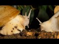 footage of chernobyl Two giant African snails emerging from their shells and looking around | |